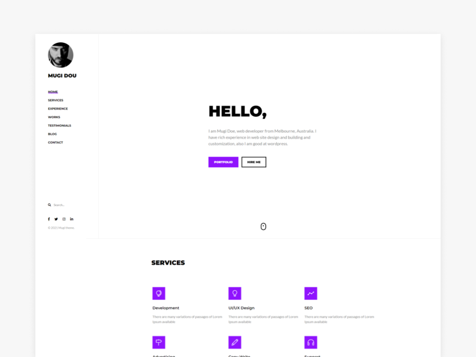 Mugi is a sleek and modern WordPress theme designed for freelancers, designers, developers, and other creative professionals who want to showcase their work in a clean and engaging way. With a minimal yet powerful layout, Mugi provides an ideal platform to create a stunning online portfolio or personal resume website.